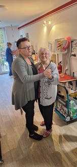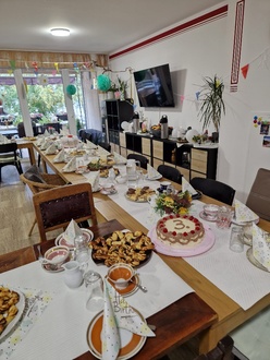 Das Fest selbst war bunt und lebendig: In alten Fotoalben wurde geblättert - viele Erinnerungen aus drei Jahren WG-Geschichte, die so manchem ein Schmunzeln oder eine Träne ins Gesicht zauberten. Mitarbeiter trugen Gedichte vor, es wurde „Stille Post“ gespielt, Geschichten vorgelesen und alte Lieder gehört, zu denen spontan getanzt wurde. „Manchmal fühlt man sich wieder wie jung“, meinte eine Bewohnerin fröhlich, als sie zu einem Klassiker das Tanzbein schwang.