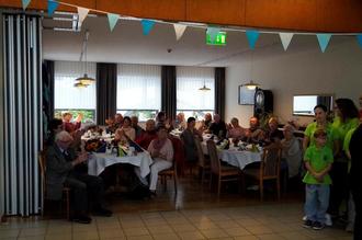 Die Jubiläumsfeier begann um 14:30 Uhr mit einer festlichen Andacht von Herrn Pfarrer Denner. Im Anschluss richtete die Heimleitung/Geschäftsführung Fr. Bernadette Scheele das Wort an Bewohner, Mitarbeiter, Vorstand, Mitglieder, Gäste, Angehörige, Ärzte, Pfarrer und Kooperationspartner. Dabei dankte sie insbesondere dem gesamten Personal für sein großes Engagement - verbunden mit einem Blumengruß.