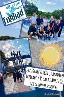Aber die treuen Dachwiger, die mit Kind und Kegel, Oma und Opa täglich Erfrischung im kühlen Nass suchen und natürlich auch finden, die ihren Stammplatz haben und sich im Kreise von Freunden wohlfühlen, ihre Bahnen schwimmen und die Sonne genießen, sollen nicht unerwähnt bleiben. Sie sind eine starke Bank und wichtig für die Zukunft unseres Freibads.