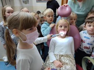 Als erstes waren wir in der Zahnarztpraxis von Herrn Günther. Im Wartezimmer konnten wir die Tiere in ihren Terrarien beobachten und im Behandlungszimmer durften wir mit der Kamera nach den Zähnen schauen. Außerdem haben wir einiges zum Thema Zähneputzen gelernt. Zum Schluss gab es dann für jedes Kind noch eine kleine Überraschungstüte mit tollen Sachen drin.