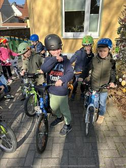 Den feierlichen Abschluss des Projekts bildete ein gemeinsames Frühstück, das zusammen mit den Eltern organisiert wurde. Gestärkt ging es danach in den Außenbereich der Kita, wo eine große, Verkehrswelt aufgebaut war. Jedes Kind brachte sein eigenes Fahrzeug mit, ob Roller, Laufrad oder Fahrrad, und durfte in dem aufgebauten Parcours sein Wissen über Verkehrsregeln und Schilder unter Beweis stellen.