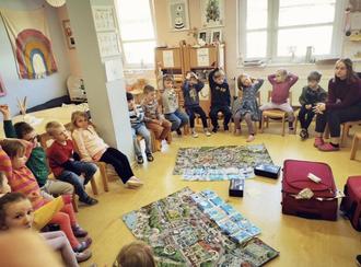 Ein weiteres Highlight war ein selbst entwickeltes Brettspiel zum Thema Straßenverkehr, das Lilly gestaltet hat. Anstelle eines Würfels arbeiten die Kinder mit Karten, auf denen verschiedene Rechenaufgaben zu lösen sind. Passend dazu wurde auch ein neues Buch zur Verkehrserziehung in die Gruppe eingeführt. In Bewegungsspielen konnten die Kinder Verkehrsregeln spielerisch einüben und erlebten so die Inhalte mit allen Sinnen.