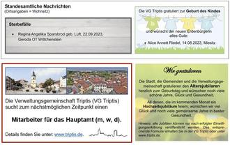 | 19.11. | 09:30 | Triptis, Stadtgebiet | Stadt Triptis - Kranzniederlegungen an Gedenkstätten |