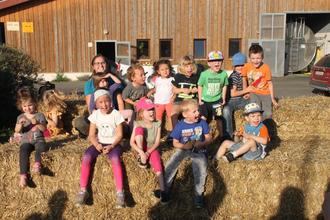 Als nächstes schauten wir die jüngsten Kälbchen an. Diese sind in sogenannten Iglus untergebracht. Unsere Kinder durften ein Iglu ohne Kalb erkunden und sich darin wie kleine Kälbchen fühlen. Zum Kälbchen streicheln ging es im Anschluss in ein Großraum-Iglu mit mehreren Kälbchen. Hier tobten unsere Kinder mit den Kälbern im Stroh und hatten viel Spaß, auch schmusen und kuscheln war erlaubt.