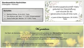 | 13.12. | 14:00 | Triptis, Schützenhaus | Stadt Triptis - Seniorenweihnacht |