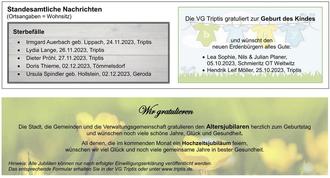 | 02.01. | 16:00-19:00 | Triptis, Platz der Jugend 1 | DRK - Blutspendetermin |