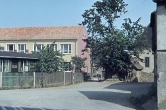 Schulbaracke, neue Schule und alte Schule hinten im Sommer 1969