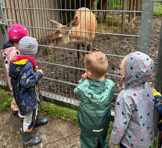 Die großen Kindergartengruppen ließen sich nicht von dem Regenwetter aufhalten und fuhren mit Bus nach Zeulenroda in das Tiergehege. Dort gab es viele Tiere zu bestaunen, von der Maus bis hin zum Damwild. Mit viel Freude wurden die Tiere mit Möhren und Äpfeln gefüttert. Natürlich wurde auch der schöne Spielplatz erkundet und bespielt. Ein gemeinsames Picknick rundete den Ausflug ab.