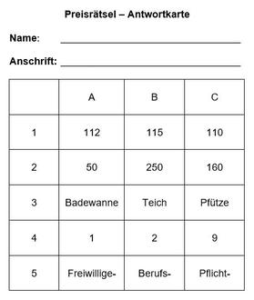 | • | Antwortzettel ausschneiden und zum „Tag der offenen Tür“ im Feuerwehrhaus abgeben. |