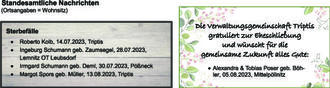 Möchten Sie Ihre Veranstaltungen hier und auf www.triptis.de veröffentlichen? Schreiben Sie per Mail an amtsblatt@triptis.de