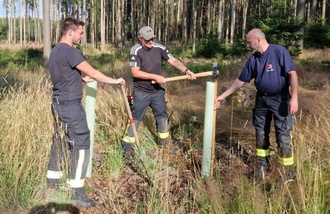 Am 16.07.2024 pflanzten die Kameraden der Einsatzabteilung der Feuerwehr Triptis 30 Nadelbäume im Triptiser Stadtwald.
