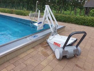 Der Lifter, der Firma ROIGK, kann Personen mit Gehbehinderung sowie Rollstuhlfahrer mittels Liftarm unter Anleitung unserer Fachangestellten einen leichten Beckenzugang verschaffen. Er ermöglicht den Nutzern, selbstständig ins Becken und wieder hinaus zu kommen. Der Lifterarm lässt sich seitlich an den Beckenrand drehen, so dass der Nutzer bequem von einem Roll- oder Duschstuhl umsteigen kann. Mittels Fernbedienung kann sich der Nutzer dann selber ins Wasser und wieder hinausbefördern. Für Rollstuhlfahrer mit einem hohen Maß an Selbstständigkeit. Dabei benötigt der Lifter keine weitere Befestigung am Beckenrand und kann somit flexibel an verschiedenen Stellen des Beckens genutzt werden.