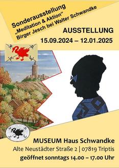 Im Heimatmuseum Triptis, das der 1899 geborene kinderlose Malermeister Schwandke seiner Heimatstadt vererbte, werden Arbeiten des Blankenhainer Konzeptkünstlers Jesch gezeigt.