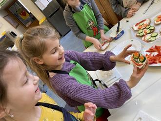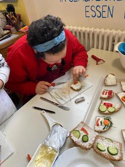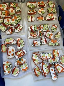 Mit Frischkäse, Gemüsestückchen und Schnittlauch entstanden tolle Kreationen, die von den Kindern anschließend mit Appetit verspeist wurden.
