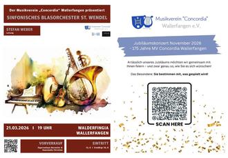 Im Rahmen ihres 175-jährigen Jubiläumsjahres lädt der Musikverein „Concordia“ Wallerfangen e. V. zu einem musikalischen Höhepunkt der besonderen Art ein: Das Sinfonische Blasorchester St. Wendel, eines der renommiertesten Blasorchester des Saarlandes, gastiert am 21.03.2026 in der Walderfingia Wallerfangen.