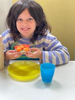 Die Kinder lernen bei diesem Projekt in 10 Doppelstunden die Grundlagen gesunder Ernährung in Theorie und Praxis kennen. Die Kinder bereiten selbst verschiedene Gerichte zu, erfahren dabei auch, wie Lebensmittel vorbereitet werden und wie man die Gerichte ansprechend anrichtet. Auch das Aufräumen und Spülen gehört zu dem Kurs dazu.