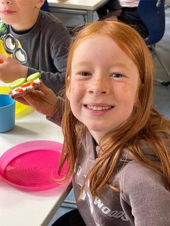 Mit Frischkäse, Gemüsestückchen und Schnittlauch entstanden tolle Kreationen, die von den Kindern anschließend mit Appetit verspeist wurden.