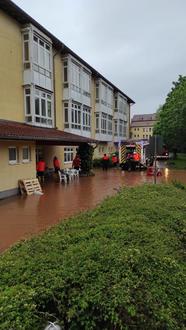 Auch das durch die Wassermassen bedrohte St. Nikolaus-Hospital konnte durch das professionelle Eingreifen unserer bestens präparierten Feuerwehr die Pflege- und Betreuungsleistungen ohne Einschränkungen gewährleisten.