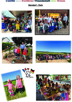Bereits zum 7.Mal verbrachten 22 Kinder im Alter von 6 Jahren sowie 4 Betreuer aus der deutschsprachigen Pariser Kita Ajefa-Ecole 5 Tage in der Kindertagesstätte Ittersdorf. Gemeinsam spielen, singen, essen und auf dem Hof toben gehörte zum täglichen Programm mit den französischen Freunden. Eis essen in Saarlouis, Spaziergänge auf dem schönen Saar Gau, Anlegen einer Blumenwiese mit dem Ortsvorsteher Heinz Rickert, sowie der Besuch einer kleiner Hühnerfarm in Düren ließen die Woche zu einem unvergesslichen Erlebnis werden. Die Ittersdorfer Kinder staunten nicht schlecht über die gelebte Zweisprachigkeit und knüpften Freundschaften mit den kleinen Gästen aus Frankreich.