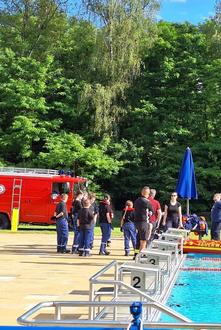 In der Zwischenzeit wird das Freibad auch von der Jugendfeuerwehr zum Training genutzt.