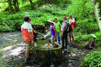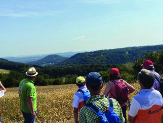 Thomas Arweiler vom Gisinger Dorfinteressenverein „Bewahren und Erneuern“ erwies sich als kompetenter Streckenführer, der unsere Freunde mit profundem Hintergrundwissen in Geschichte und Geologie begeisterte.