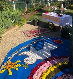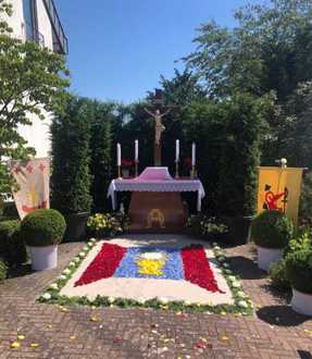 Die Kinder aus Ittersdorf, Bedersdorf und Düren haben in Zusammenarbeit einen schönen Fronleichnamsaltar bei Familie Görs, die ihren Garten zur Verfügung stellten, gestaltet. So wurde in diesem Jahr ein neuer Prozessionsweg gefunden und es konnten drei Altäre begutachtet werden konnten. Einen herzlichen Dank an die Damen der Altargemeinschaft Ittersdorf, die den Altar an der Grotte gestalteten und der Familie Bost mit Helfer, die auch einen Altar aus einem Blumenmeer gestaltet haben.