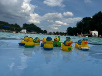 Der Förderverein Freibad hatte darüberhinaus kleine Wasserbomben und bunte Wasserspiele für die Kinder angeschafft.