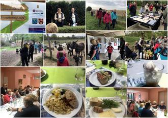 Am 24. September 2022 fand in unserem Partnerdorf Mey bei Metz eine ca. 9 km lange Gourmetwanderung statt. Diese Wanderung war der Abschluss des vom Förderverein Bewahren und Erneuern Gisingen und der Commune de Mey initiierten und durchgeführten INTERREG VA Mikroprojektes "Vertiefung der Dorffreundschaft Mey-Gisingen".Treffpunkt war morgens an der Mairie von Mey, wo es Croissants, Kaffee und Säfte zum Start gab. Nach Begrüßungsworten in deutscher und französischer Sprache durch die Bürgermeisterin von Mey Silvie Roux und Marie Claire Dumas ging es über ein Teilstück des luxemburgisch-lothringischen Jakobsweges zu Ziegen- und Eselsgehegen, die zu naturpädagogischen Zwecken in Vallières eingerichtet wurden. Danach führte der Weg in einen Park in Vallières, wo eine Rast-Station mit verschiedenen Käse- und Wurst-Häppchen dargeboten wurden. Neben Wasser und Säften bestand auch die Möglichkeit diverse prämierte lothringische Biersorten zu verkosten. Entlang des Vallières-Baches führte der Weg weiter nach Vantoux, wo im Gemeindesaal eine Ausstellung lokaler Künstler mit sehenswerten Bildern und Skulpturen zu sehen war. Danach konnte auf dem Spielplatz von Vantoux eine weitere Rast genossen werden: Neben Wasser, Saft und Brezeln wurde ein Cremant mit Mirabellenlikör als regionaler Aperitif dargeboten. Vorbei an Wohngebieten, einer profanisierten Kapelle und einem alten jüdischen Friedhof in Vantoux ging es zurück nach Mey. In der Mairie wurde dann ein abschließendes köstliches Mehrgängemenü gereicht: Begleitet von regionalen Weinen, Salat und Quiche Lorraine, u.a. Hühnchenbrust mit Gemüse und Spätzle an Mirabellensauce, Käseteller und Mirabellen-Eis-Dessert. Insgesamt war dabei viel Gelegenheit sich grenzüberschreitend auszutauschen und Bekanntschaften zu vertiefen. Über das gesamte Mikroprojekt wird abschließend noch in einer Broschüre berichtet, die sowohl in Mey als auch in Gisingen zur Verfügung gestellt wird. Zusammenfassende Informationen finden Sie unter www.gisingen.de. Über das Mikroprojekt hinaus sind auch schon weitere gemeinsame Veranstaltungen geplant: Beteiligung von Mey am Gisinger Volkstrauertag und dem Gisinger Adventsmarkt sowie ein gemeinsamer Besuch auf dem Metzer Weihnachtsmarkt. Das Mikroprojekt war somit ein schöner Erfolg und wir bedanken uns nochmals bei allen Beteiligten und bei der Europäischen Union für die Förderung.