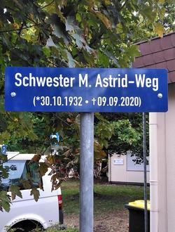 Schwester Astrid war eine herausragende Persönlichkeit. Sie wirkte ab 1972 im St.-Nikolaus-Hospital, davon lange Jahre als Oberin im Orden der Barmherzigen Schwestern vom Hl. Karl Borromäus in Wallerfangen. Am 9. September 2020 ist sie im Alter von 87 Jahren verstorben. In einer schwierigen Zeit sorgte sie für den Fortbestand des St.-Nikolaus-Hospitals: In den siebziger und achtziger Jahren strebten die Kostenträger, d.h. die Krankenkassen, und Gesundheitspolitiker bundesweit aus "Kosten- und Qualitätsgründen" die Schließung kleiner Krankenhäuser an, überwiegend Belegkrankenhäuser. Nur größere, zentrale Häuser sollten die Krankenhauslandschaft formieren. Viele kleine Krankenhausträger gaben auf. Schwester Astrid, in dieser Zeit Geschäftsführerin des St.-Nikolaus-Hospitals, widersetzte sich vehement diesen Bestrebungen. Im Verbund mit dem Verwaltungsrat der Adolf von Galhau'schen Sophienstiftung sowie kommunalen Verantwortlichen sicherte sie so den Fortbestand des Wallerfanger Krankenhauses.