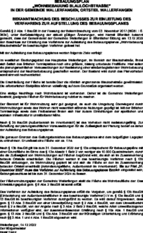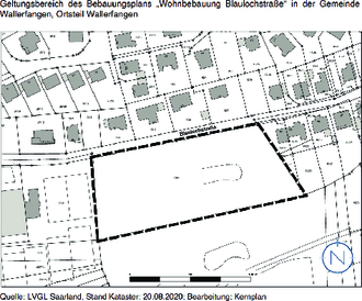 Gemäß § 2 Abs. 1 BauGB in der Fassung der Bekanntmachung vom 03. November 2017 (BGBI. I S. 3634), unter Berücksichtigung der aktuell gültigen Änderungen, wird hiermit öffentlich bekannt gemacht, dass der Gemeinderat der Gemeinde Wallerfangen in öffentlicher Sitzung am 13.12.2022 den Beschluss zur Einleituna des Verfahrens zur Aufstellung des Bebauungsplanes „Wohnbebauung Blaulochstraße" im beschleunigten Verfahren gefasst hat.