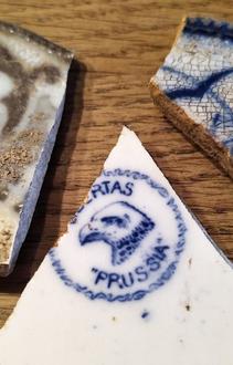 Um eine klare Antwort auf unsere Frage zu finden, startet der Verein für Heimatforschung Wallerfangen hiermit einen Aufruf an die Bevölkerung. Wenn die ab den 1920er Jahren nur kurzzeitig produzierte „Sondermarke“ Libertas Prussia aus Wallerfangen stammt, so werden ganz bestimmt Teile der Serie in Wallerfanger Haushalten zu finden sein. Es kann mit Bestimmtheit angenommen werden, dass Arbeiter die Gelegenheit wahrgenommen haben, die seltene Exportkeramik an ihrem Arbeitsplatz zu erwerben. Sollte nur ein Stück der Sondermarke Libertas „PRUSSIA“ (Bild) in Wallerfangen zu finden sein, so wäre das Kernargument für den Produktionsstandort Wallerfangen gegeben. Bitte nehmen Sie Kontakt mit uns auf, wenn Sie ein Keramikteil der Sonderserie „Libertas Prussia“ besitzen.