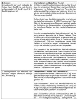 Folgende Arten umweltbezogener Informationen sind im Rahmen des Bebauungsplanverfahrens in den vorstehend aufgezählten, zu veröffentlichenden Unterlagen für die einzelnen Schutzgüter verfügbar: