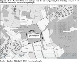 Es ist eine externe Kompensationsmaßnahme auf dem Flurstück 1/27 der Flur 2 der Gemarkung Kerlingen geplant, die Fläche befindet sich nordöstlich des Plangebietes. Die Lage der Maßnahme ist ebenfalls dem beigefügten Lageplan zu entnehmen.