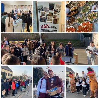 Das Projekt „Doppeleinhorn“ will „das Lebenselixier der Demokratie, die Meinungsfreiheit erhalten und kämpft entschlossen gegen Hass, Hetze und Intoleranz in der Menschenwelt“ – dazu kommen Musiker:innen, Schauspieler:innen und Influencer:innen in die Schulen und arbeiten in Workshops mit den Klassenstufen 7 und 8 zu diesen Themen. Zusätzlich gibt es dann für die gesamte Schule Pausenkonzerte und die Möglichkeit für Autogramme und Selfies. Vielen Dank nochmal an den KV De Neimerder, die uns die Walderfingia überlassen haben, obwohl dort bereits der Aufbau für die Kappensitzungen begonnen hatte.