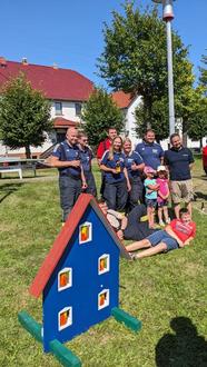 Auf diesem Weg möchte ich mich bei der Feuerwehr und Gemeinde Ecklingerode für die Ausrichtung dieses Tages recht herzlich bedanken. Alle haben nach der Siegerehrung noch in gemütlicher Runde zusammen gesessen und sich angeregt unterhalten und die Übung untereinander ausgewertet. Außerdem war der Aussendienstmitarbeiter der Firma Brandschutz Müller aus Gotha, mit einem Modell zur Nottüröffnung anwesend. Hier konnte jeder Feuerwehrmann einmal versuchen eine verschlossenen Tür zu öffnen. Auch für die kleinen Besucher aus dem Dorf wurde etwas geboten. Sie konnten an einem Brandhausmodell sehen was alles passieren kann und wie die Feuerwehr vorgeht um den Brand zu bekämpfen. Dieses wurde vom Kreisfeuerwehrverband gestellt und von der Kameradin Blacha betreut.