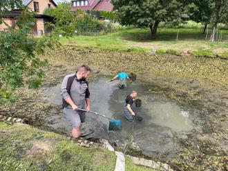 Hierbei konnte sich die Gemeinde voll und ganz auf die Feuerwehr verlassen, die diese Arbeiten am 22. & 23.08. durchführte. Zahlreiche Fische, Frösche und Kröten wurden gefangen und nach Absprache mit den jeweiligen Besitzern in Teiche unserer Nachbarorte Ferna und Tastungen gebracht. Die Seerose fand ebenfalls in Tastungen Unterschlupf. Zuvor musste der Teich zunächst fast vollständig leergepumpt werden, wobei die sehr gute technische Ausstattung der Feuerwehr unerlässlich war, damit dies zügig geschehen konnte. Auch als auf Bitten der Baufirma noch kleinere Nacharbeiten in der folgenden Woche durchgeführt werden mussten, zögerten die Kameradinnen und Kameraden nicht, der Gemeinde erneut unter die Arme zu greifen.