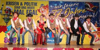 Einen Kindheitstraum erfüllte sich in diesem Jahr das Männerballett. Als Cowboy´s mit Pferd und Revolver genossen sie das Leben im Saloon mit Whisky und Bier und legten mit der bezaubernden "Sexy Lady" Laura einen flotten Line-Dance auf die Bretter.