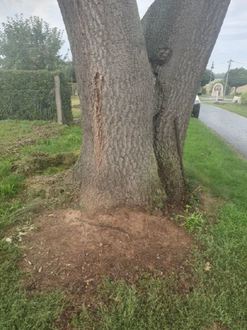 In der Nähe der Böseckendorfer Annenklus wurde eine ca. 180 Jahre alte Eiche von Menschenhand zerstört. Von Seiten der politischen Gemeinde wurde ein Baumgutachten im Auftrag gegeben. Das Gutachten zeigt auf, dass durch Aufbringen eines Totalherbizids im Winter 2022 bzw. im Frühjahr 2023 der Baum zerstört worden ist. Eine Revitalisierung sowie eine Erholung der Eiche sind nicht mehr zu erwarten. Erschwerend kommt hinzu, dass über 70 % der Wurzeln abgestorben sind, weitere absterben werden und damit die Stand- und Wurfsicherheit des Baumes nicht mehr gewährleitstet ist. Aus diesem Grund wurde von Seiten der Gemeinde ein Rückschnitt auf eine verbleibende Reststammhöhe von fünf Metern, anstatt einer Fällung des Baumes, beauftragt. Somit können wenigstens Bewohnern von trockenem Totholz (z. B. Insekten und Spechte) ein Habitat erhalten.