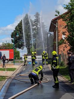 Am Mittag begann dann unser Wettkampf um den Wehnder Warte Pokal 2024, an dem die Wehren aus Bodensee, Rollshausen, Seulingen und Obernfeld teilnahmen. Schlussendlich nach einem wirklich knappen Zeitunterschied zwischen der Wehnder Männermannschaft und Seulingen blieb der Wehnder Warte Pokal in Wehnde, wurde aber an den 2. Platz nach Seulingen gegeben - der Pokal ist schließlich ein Wanderpokal. Während und nach dem Wettkampf verbrachten wir einen wundervollen Sonntag mit stetig ausgelassener Stimmung. Unter den teilnehmenden Mannschaften herrschte eine tolle Harmonie, so dass es überhaupt nicht drauf ankam, wer an dem Tag gewonnen hatte. „Kameradschaft“ wurde hier ganz groß geschrieben, so wie es sich gehört.
