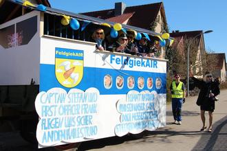 Angeführt vom Fern’schen Pieper, begleitet von der Prinzengarde, zogen der Wagen des Prinzenpaares Benno I. & Jeannine I., die „Feldgiek-AIR“ mit ihren feschen Stewardessen, die Ghostbusters auf Geisterjagd, die Ying-Yang-Jecken mit ihrem feuerspeienden Drachen und der Musikwagen,,Pieper’s Mucki-Bude" sowie Neptun mit seinen Meerjungfrauen, die Space-Girls mit ihrer Rakete, Sponge Bob mit seinen Freunden und unsere Karnevalisten aus Tastungen als Sonnen, Mond und Sterne als Fußgruppen mit Musik und Tanz durch das Dorf bis unter die Dorflinde.
