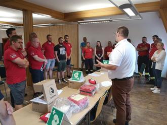 Ein Defibrillator kann Leben retten - vorausgesetzt, man weiß, wie man ihn bedient. Dieses Wissen konnten sich Mitglieder der Freiwilligen Feuerwehren der o.g. Gemeinden, sowie die Bürgermeister Patrick Schotte (Brehme) und Mario Nolte (Tastungen) und die Bürgermeisterin Monique Haushälter (Wehnde) sowie Beschäftigte der VG und der Gemeinschaftsvorsitzende Thomas Raabe bei der Unterweisung am 29.06.2023 aneignen.