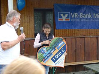 Ein Höhepunkt war die Überreichung eines Schecks der VR-Bank Mitte über 1000,- €. Dazu war eigens die Regionaldirektorin für Privatkunden der VR-Bank Mitte, Frau Franka Winterlich, angereist, die ausdrücklich die gute Zusammenarbeit mit den Vereinen erläuterte und die VR-Bank als Geschäftspartner darstellte. Gerade so kleine Vereinen, wie die SG Tastungen 01, sind an dieser Stelle auf Sponsoren angewiesen. Wir bedanken uns recht herzlich bei der VR-Bank Mitte für die finanzielle Unterstützung. Auch die Tombola wäre in der Form nicht möglich ohne die materielle und finanzielle Unterstützung von Sponsoren wie z.B. die TEAG (Thüringer Energie AG), die EW (Eichsfeldwerke GmbH), ZERO Profi Maler Markt Göttingen, Futtermittelhandel Norbert Fuge oder EDEKA Markt GLAHN Worbis und weitere. Ebenfalls an dieser Stelle ein herzliches Dankeschön.