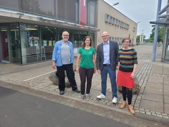 Grenzlandmuseum Eichsfeld in Teistungen, v.l.n.r.: Georg Baumert (Leiter Umweltbildung Grenzlandmuseum Eichsfeld), Carlotta Schulz (stellv. Geschäftsführerin SNT), Dr. Peter Wurschi (Thüringer Landesbeauftragte), Mira Keune (Leiterin Grenzlandmuseum Eichsfeld)