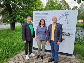 Deutsch-deutsches Museum Mödlareuth: v.l.n.r.: Robert Lebegern (Museumsleiter), Carlotta Schulz (stellv. Geschäftsführerin SNT), Dr. Peter Wurschi (Thüringer Landesbeauftragte)