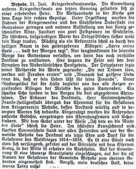 Jedes Jahr wird am Volkstrauertag oder zur Kirchweih durch Gemeindevertretung und Kirchgemeinde den Gefallenen und Vermissten der beiden Weltkriege mit Ansprache und Kranzniederlegung gedacht.