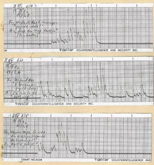 Graphendiagramm eines Lügendetektortests mit einem mutmaßlichen BND-Kontaktmann 1975