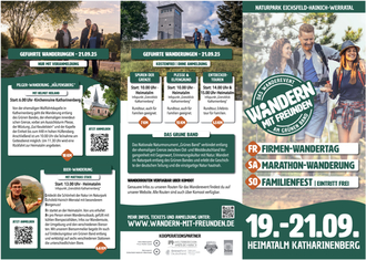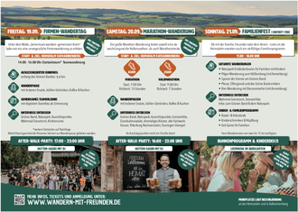 Samstag, 20. September 2025 wartet mit sportlichen Herausforderungen auf: Bei der großen Marathon-Wanderung können Teilnehmende zwischen einer 25 km langen Halbmarathon- und einer 45 km langen Marathonstrecke wählen. Beide Touren führen durch abwechslungsreiche Landschaften mit Naturpark, Burgen, Fachwerkhäusern und dem eindrucksvollen Grünen Band. Für Stärkung unterwegs sorgen Wanderpausen. Auch hier gibt es Medaille und Urkunde als Erinnerung. Im Anschluss lädt die After-Walk-Party erneut zum gemeinsamen Ausklang ein.