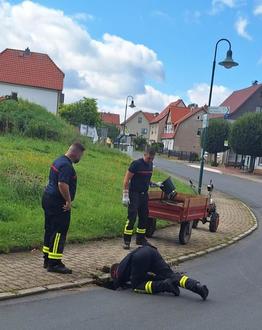 Am 10.08.2024 fand ein Arbeitseinsatz der Gemeinde in Zusammenarbeit mit der Feuerwehr statt. Dabei unterstützten die Kameradinnen und Kameraden unserer Feuerwehr die Gemeinde bei der Reinigung der mit Schlamm und Laub verschmutzten Körbe in den Straßenabläufen.