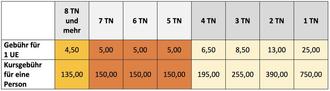 Dabei orientiert sich die Kreisvolkshochschule an den Preisgefügen anderer Thüringer Kreisvolkshochschulen. Die neue Gebühr wird für alle Kurse und in allen Fachbereichen identisch erhoben. Es werden weiterhin Kurse in Kleingruppen angeboten (5 - 7 Personen 5,00 €/UE). Kurse mit noch kleiner Besetzung sind möglich, dabei werden die Gebühren honorardeckend berechnet.