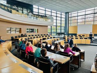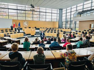 An dem Ort, wo sonst die Großen Politik machen, gab es für die Schülerinnen und Schüler viele interessante Informationen zur Geschichte des Landtags, welche Parteien dort vertreten sind und wie das mit der Demokratie funktioniert. Die Gelegenheit wurde auch genutzt, um spielerisch in die Rolle der Abgeordneten zu schlüpfen. Diskutiert wurde darüber, ob die Sommerferien verlängert werden sollen.